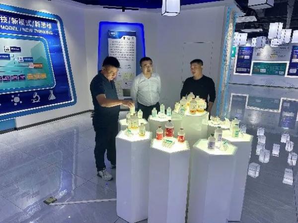 春茂集團羅總、鳳翔集團梁科長、瑞金祥瑞賈總和楊總在華南生物營銷中心總經(jīng)理徐兆強的陪同下參觀了華南生物展廳,徐總對華南生物的發(fā)展歷程和企業(yè)文化進行了詳細的講解,對華南生物未來的發(fā)展規(guī)劃及研發(fā)方向與羅總一行進行詳細介紹。