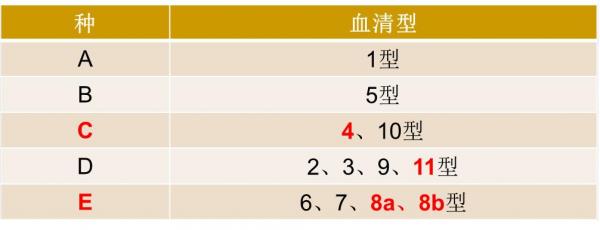 根據限制性內切酶消化不同,FAdV-Ⅰ分為A、B、C、D、E 5個種。根據血清交叉中和試驗,可分為12個血清型。A對應的血清1型,B對應的血清5型,等等。血清型8b和11型之間有一定的交叉保護性,但大部分血清型之間幾乎無交叉保護性。FAdV-Ⅰ主要在禽類呼吸道和消化道上皮細胞內復制,形成包涵體。C4型引起禽HPS;各血清型都能引起IBH,但主要是血清8a、8b和11型;A1、8a和8b型能引起禽肌胃糜爛。